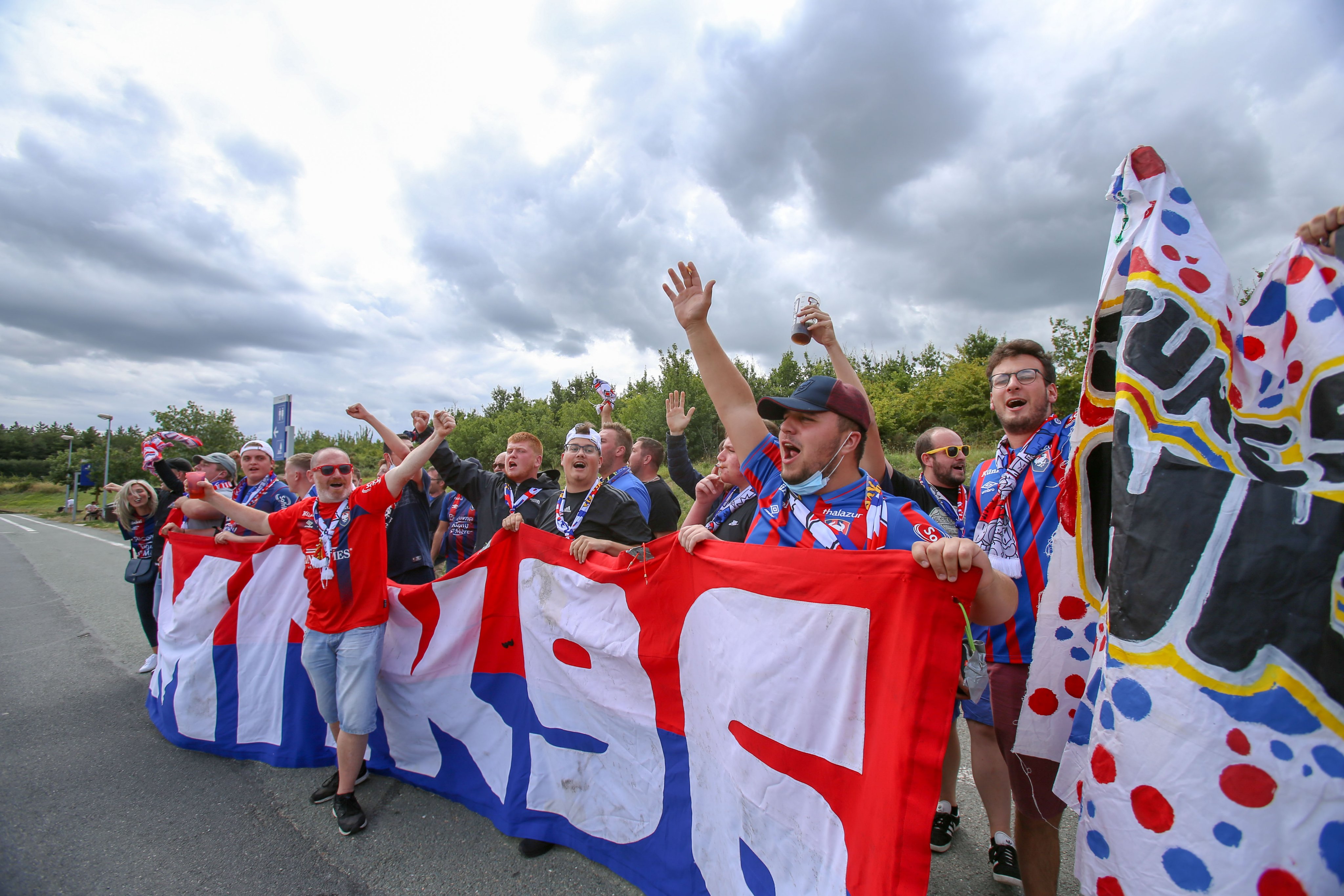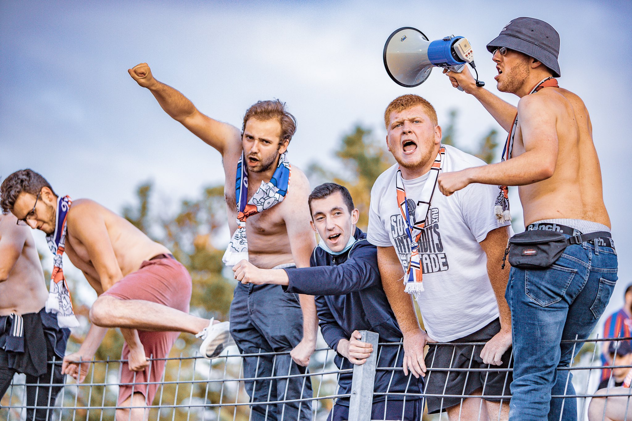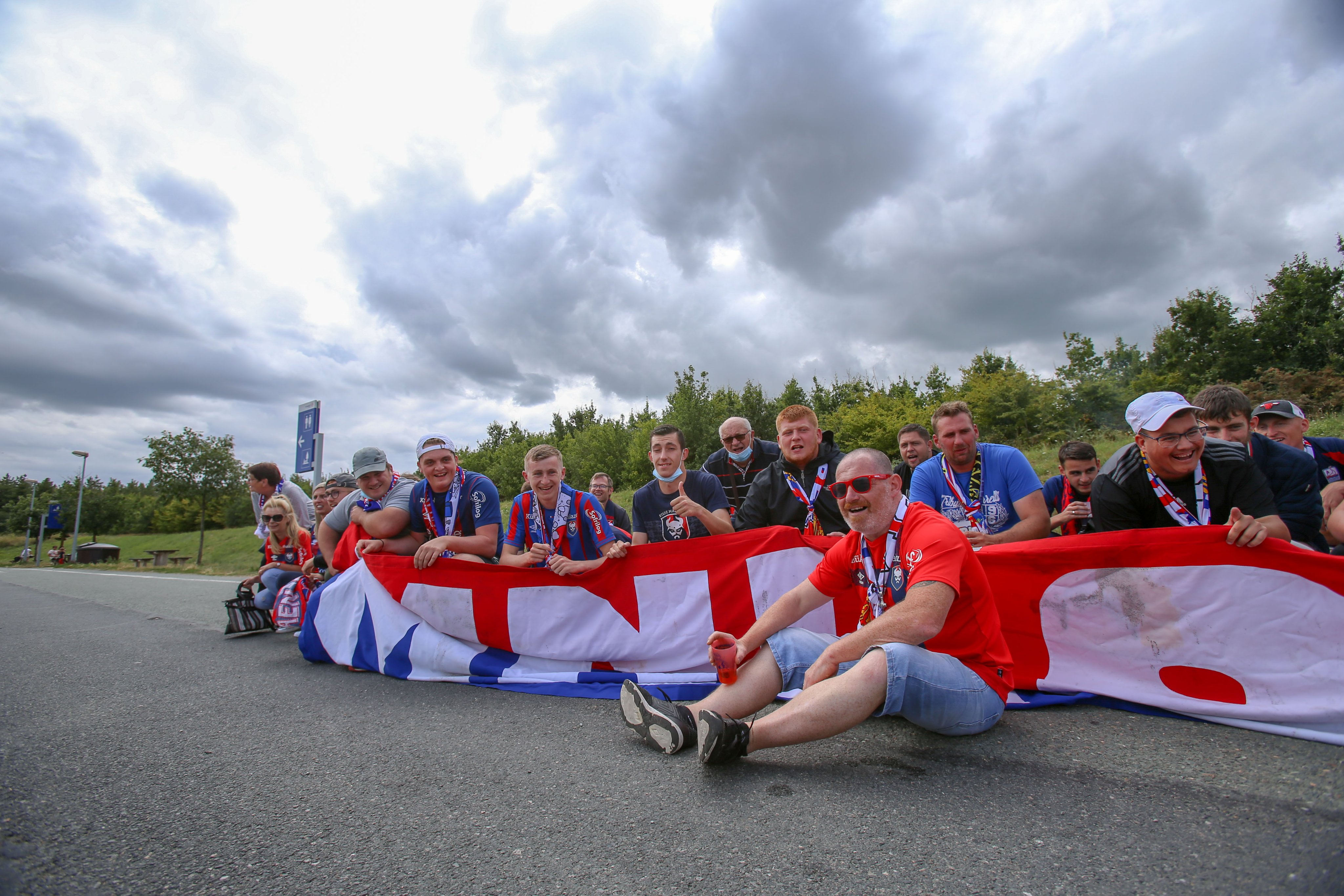 Descente du bus en chantant ! L'ambiance est présente, c'est une bonne centaine de personnes qui seront dans ce parcage pour encourager fièrement le SMC.